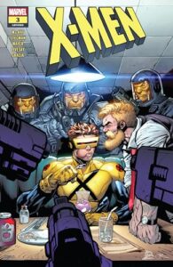 Cyclops tries unsuccessfully to persuade Rogue not to attack Graymalkin; we’ll see Rogue’s side of that conversation in Uncanny X-Men vol 6 #2, which won’t be out for two weeks. Cyclops is clearly aware of the fact that Graymalkin has been turned into a prison over in Uncanny X-Men and thinks that Rogue’s group are hopelessly outpowered by whoever’s in charge of it. Scott evidently had plans of his own to deal with this, and he’s going to have to accelerate them now.