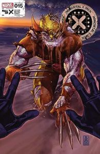 Heather said last issue that she had found a way to “save” Wolverine, and she refers throughout this scene to breaking Revelation’s hold on him. Apparently Leonard never asks her what the plan is, because we’ll find out later that she’s simply planning to kill him. She believes, probably correctly, that being forced into service as a weapon again would be the most horrific thing he can imagine; evidently she believes that she’s freeing him from torment.