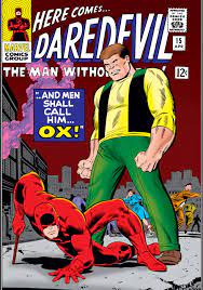 With Ka-Zar’s origin story out of the way, Stan Lee reverts to the established Daredevil formula. Matt’s back in New York, he’s back in the office, and he’s back in the romantic triangle with Karen and Foggy. Poor Foggy is still feeling the after-effects of being hospitalised by the Fellowship of Fear back in issue #6. Not that he’s mentioned it in issues #7-14, of course, but apparently it’s still giving him dizzy spells. And so Matt is given the opportunity to reflect on how the Ox was, in fact, the most dangerous member of the Fellowship of Fear.