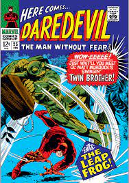 We jump forward quite a few issues here. So, just for the record: Issue #19 is more of the Gladiator and the Masked Marauder. Issues #20-21 are an Owl story, in which he kidnaps the judge who sentenced him to jail and forces Matt to defend him in a mock trial before a jury of criminals. It’s a lovely idea, but Stan couldn’t figure out a clever solution, so Daredevil just hits everyone with a stick. Issue #22 is the Tri-Man, but that’s just a robot built by the Masked Marauder. Issue #23 is another Gladiator / Masked Marauder story. Issue #24 is the Plunderer again. And that brings us to…