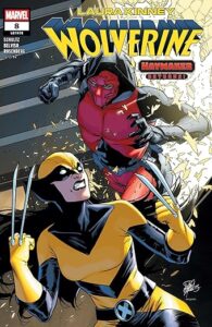 Scout. Gabby shows up on Laura’s front steps at the end of the issue with half her face mutilated. Since Gabby doesn’t feel pain, we can’t read too much into her relatively muted reaction. She also appears with Laura in this week’s Uncanny X-Men #17, looking absolutely fine, and she looks normal on the covers of the next two issues as well. Basically, it looks like a Masque story, but we’ll see.