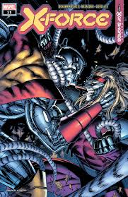 This is a slightly random batch of issues to cover. But the last time I reviewed X-Force I took it up to issue #9, and issues #13-14 are “X of Swords” tie-ins that aren’t really issues of X-Force at all. (I’ll review “X of Swords” separately in due course.)