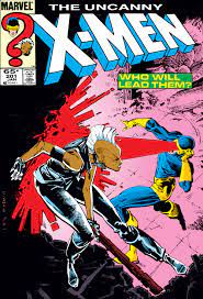 On returning home from Paris, the X-Men meet the newborn Nathan Summers (the future Cable). Magneto takes up his role as the New Mutants’ mentor. And Storm beats Cyclops in a duel, to become the X-Men’s leader again. Wolverine blatantly supports Storm in that argument, arguing that Cyclops’ heart is no longer in it – presumably because of Cyclops’ conflicted feelings about his duty to his family. Wolverine thinks of Scott’s non-combatant family as a liability.