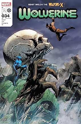 COVER / PAGE 1: Wolverine attacks Beast’s giant walking skull base thingy.