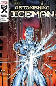 COVER / PAGE 1. Iceman in action in a city; basically just a generic Iceman cover.