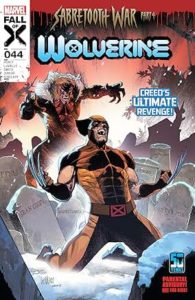 This version of Sabretooth was apparently torn apart by the Greenhouse once its defence systems came on line at the end of issue #42; he was left for dead by Sabretooth Prime on retreating. Clearly, he wasn’t actually dead – the art was always less than emphatic on the point – and his healing factor has patched him up.
